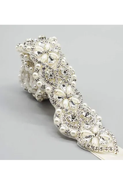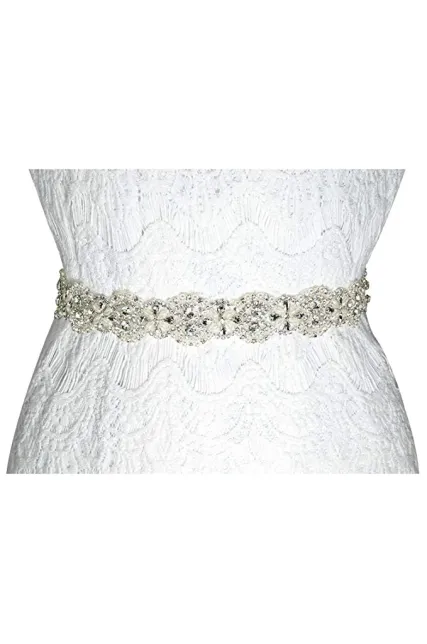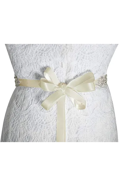 - Sash is amply adorned with lustrous embellishments that add some much needed sparkle to any gown