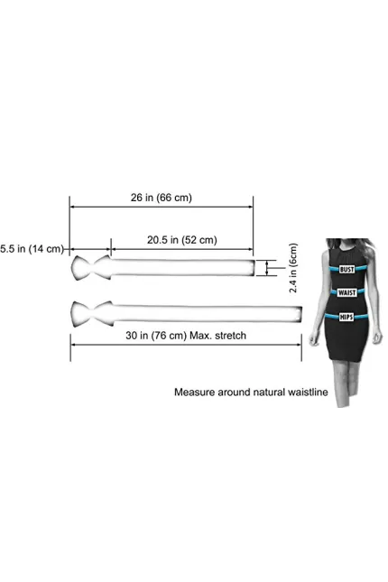 - SIZE (APPROX.) - Total length without stretching (includes bow/flower): 26 in (66 cm). Max. stretch up to 30 in (76 cm) for a comfortable fit. As the waist size may vary among same size lady, please measure around your natural waistline to check if the belt fits you. Belt width: 2.4 in (6cm). Size of Bow/Flower part: length: 5.5 in (14 cm), width: 3.5 in (9 cm).