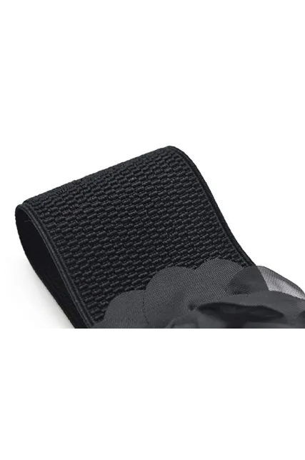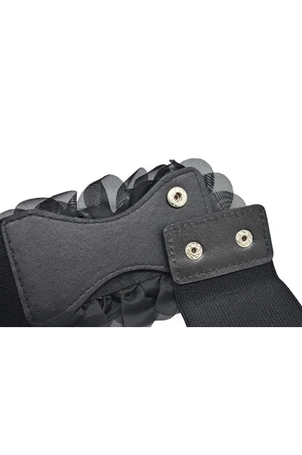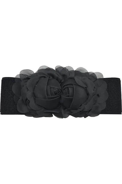 - SIZE (APPROX.) - Total length without stretching (includes bow/flower): 26 in (66 cm). Max. stretch up to 30 in (76 cm) for a comfortable fit. As the waist size may vary among same size lady, please measure around your natural waistline to check if the belt fits you. Belt width: 2.4 in (6cm). Size of Bow/Flower part: length: 5.5 in (14 cm), width: 3.5 in (9 cm).