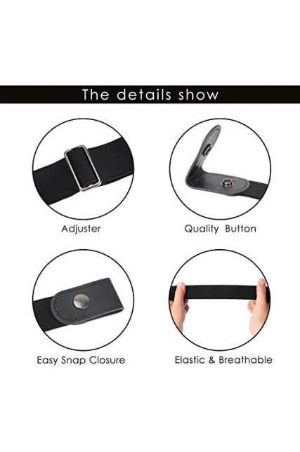 - NO BUCKLE BELT- Super Comfortable,feels like you are not wearing a belt at all, and it holds up your pants as well. No annoying buckle,No allergic,No bulge under your clothes, No show and invisible. No buckle pressing into your belly.