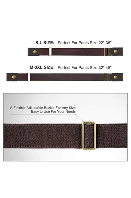 - ☞Invisible Belt☜ - No bulge, no hassle any more.The stretchy elastic no show belt lay flat under your shirt or jacket without any buckles digging into your stomachand. Keeping far away from bulky buckle.No need to buckle and unbuck a belt when you go to bathroom. Simple Design Makes Your Life Simple.