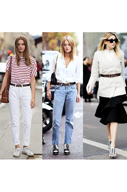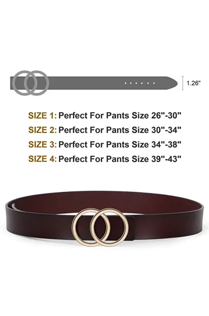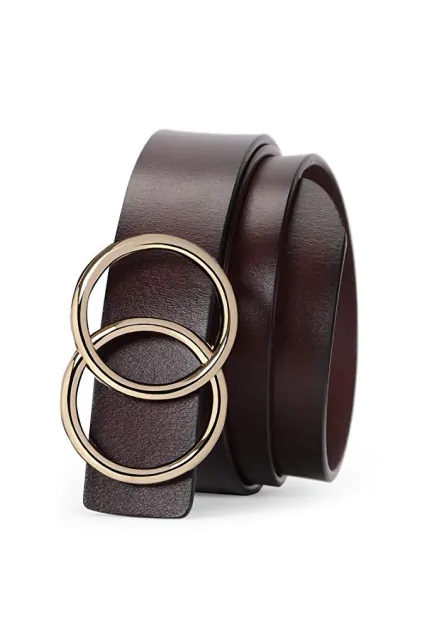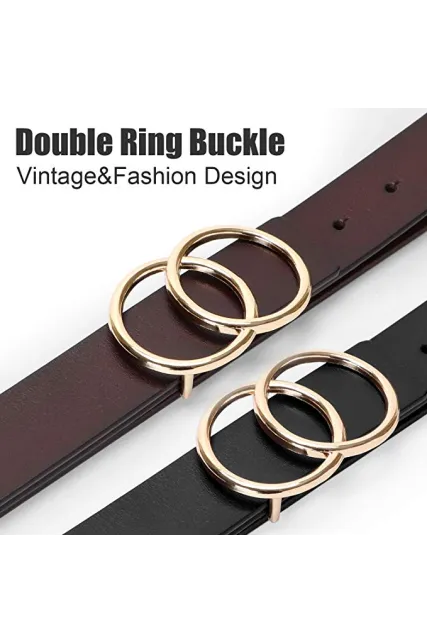 - ✔Vintage O-Ring Buckle Belt - Circle ring buckle is getting more fashionable. Vintage double ring buckle belt with western design is going to rock your world.The jeans belt is not pin buckle belt, it’s easy to wear and take off.