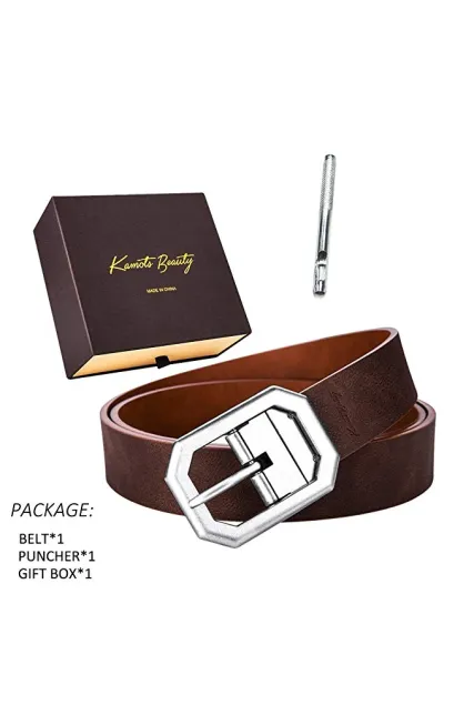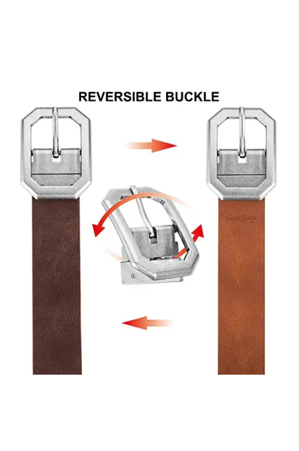 - WOMEN’S CASUAL LEATHER BELT - Smart men and womens brown belt to outstanding your body line. This western vintage womens belts for jeans is a good choose for your dress. This reversible belt featuring a stylish no lead & no nickel alloy buckle in silver color.