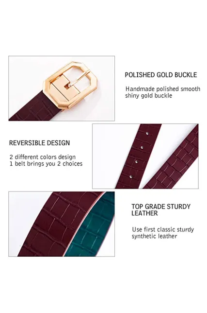 - Reversible Design-2 side reversible women belt,2 colors for 1 belt,buy 1 seems get 2 beautiful belt.Different color matches more clothing and occasions.