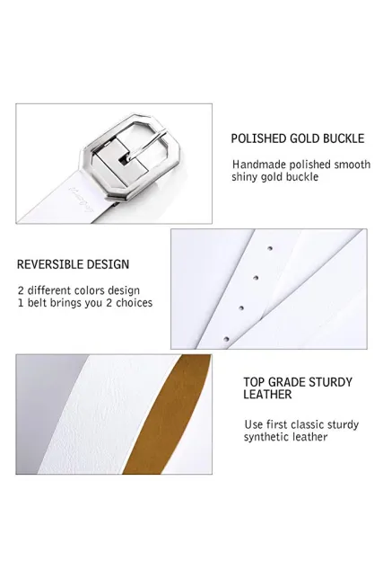 - Reversible Design-2 side reversible women belt,2 colors for 1 belt,buy 1 seems get 2 beautiful belt.Different color matches more clothing and occasions.