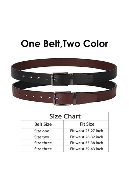 - Reversible Leather Belt -- One equal Two! Rotated solid buckle making it easy to reverse the women belt from one side to the other side. You can change color from black or brown easily to match your different dresses, specially during travelling. Unisex designs with gift box, a super-excellent Christmas gift for boyfriend/lover, husband, father/mother, friends, teenagers