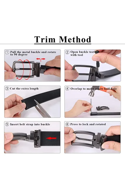 - Adjustable Designer Belt -- 28mm/1.1in wide belt strap. Different size for choice, Size1 fit for waist 23-27in, Size2 for 28-32in, Size3 for 33-38in, Size4 for 39-43inPlease choose the slightly larger one if you are not sure, because it is easy to remove the buckle and trim the belt down to you fit size.