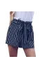 Shorts for Women,Retro Stripe Casual Fit Elastic Waist Pocket Self Tie Pants Hot Sale
