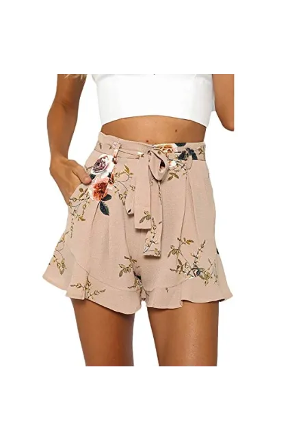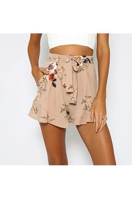 Shorts for Women,Retro Stripe Casual Fit Elastic Waist Pocket Self Tie Pants Hot Sale