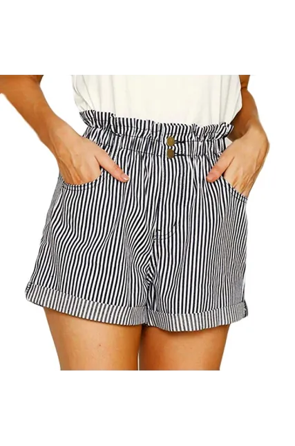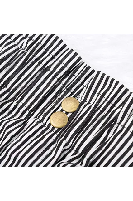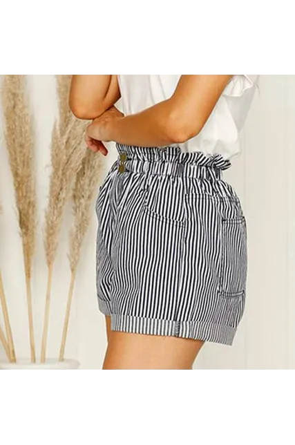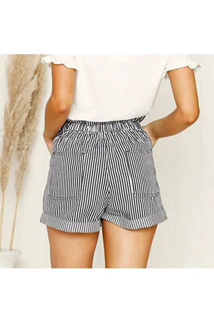 Shorts for Women,Retro Stripe Casual Fit Elastic Waist Pocket Self Tie Pants Hot Sale