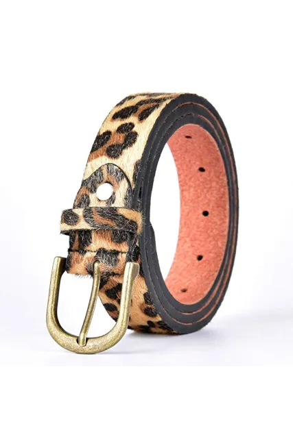 - Vintage alloy buckle and High Quality 1.1Inch Design ,Leopard Printed Belt with Artificial Horse hair,Comfortably and Sexy