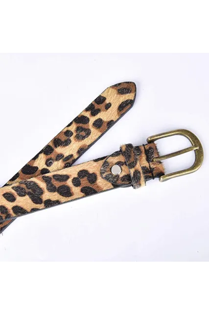 - Vintage alloy buckle and High Quality 1.1Inch Design ,Leopard Printed Belt with Artificial Horse hair,Comfortably and Sexy