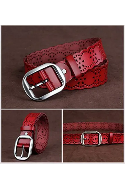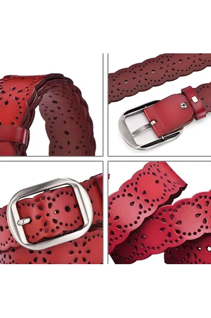 TUNGHO Womens Hollowr Flower Genuine Leather Vintage Belts With Needle Buckle Plus Size XXXL