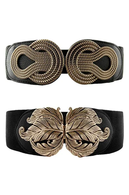 VOCHIC 2pcs Vintage Metal Interlock Buckle Elastic Waist Belt Womens Basic Wide Stretchy for Dress