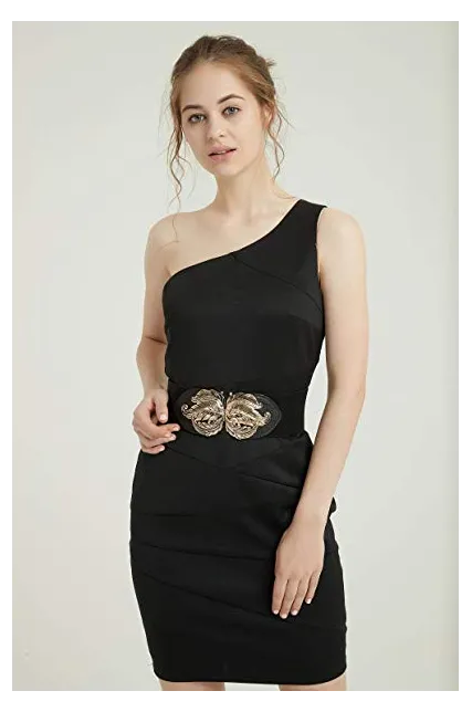 VOCHIC 2pcs Vintage Metal Interlock Buckle Elastic Waist Belt Womens Basic Wide Stretchy for Dress