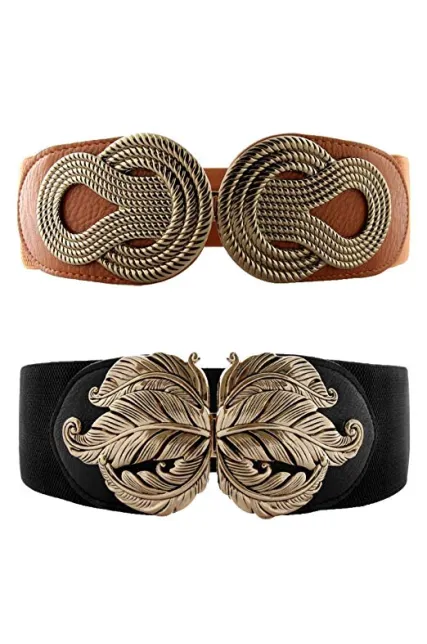 VOCHIC 2pcs Vintage Metal Interlock Buckle Elastic Waist Belt Womens Basic Wide Stretchy for Dress