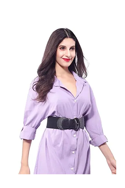 VOCHIC PU Leather Elastic Wide Belt for Women Ladies Dress Stretch Thick Waist Belts