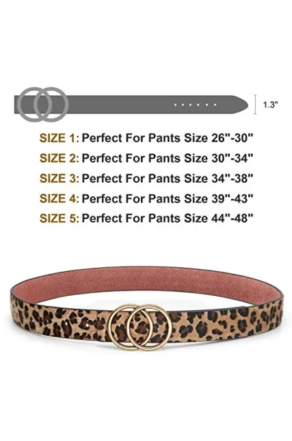 WERFORU Women Leather Jeans Belt for Pants, Ladies Plus Size Waist Belts Double Ring Buckle