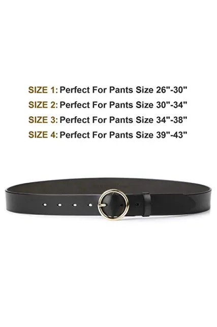 - Plus Size Women Belt - Adjustable belt with four size in two colors, black belt and coffee belt. The jeans belt perfect for pants size 26"-30"/30"-34"/34"-38"/39"-43". A puncher enclose in the package for you to trim the women belts by yourself if the belt is long for you.