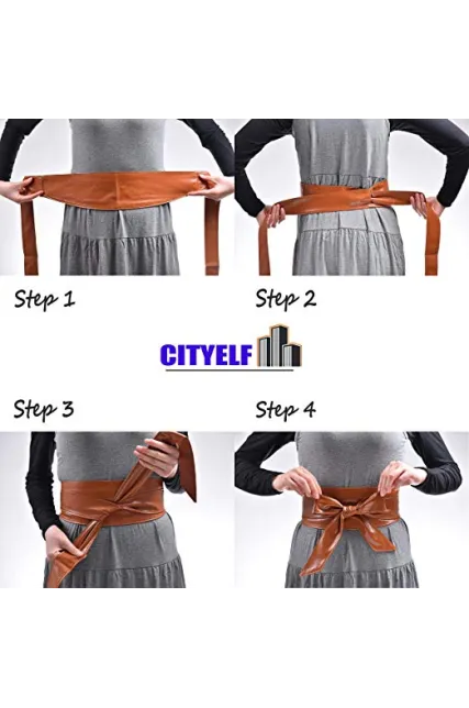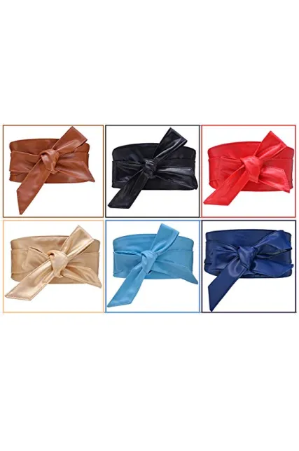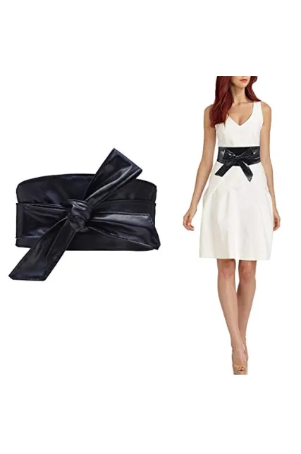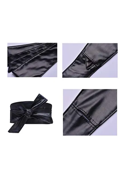 Woman Leatherette Waistband Obi Belt Cityelf Wrap Around Lace Up Cinch Band Wide Large Size