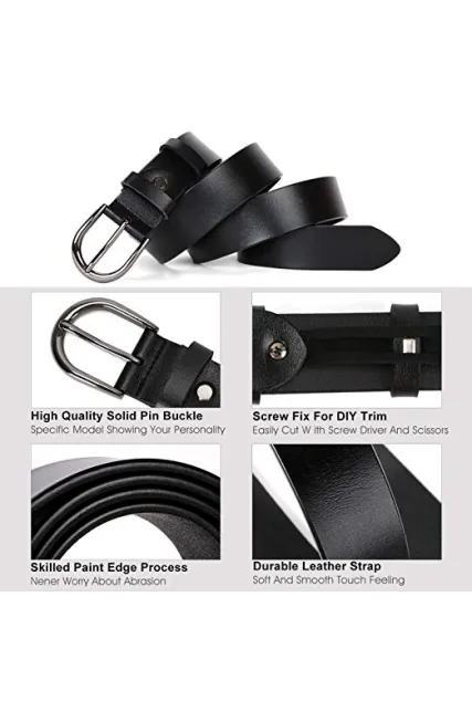 Women Leather Belt for Pants Dress Jeans Waist Belt with Brushed Alloy Buckle By WHIPPY