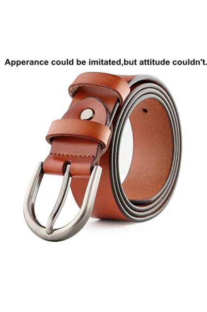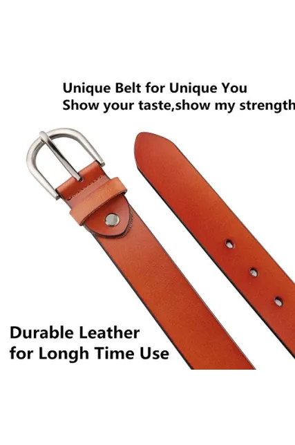 Women Leather Belt for Pants Dress Jeans Waist Belt with Brushed Alloy Buckle By WHIPPY