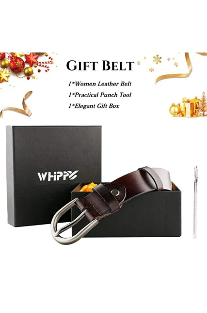 Women Leather Belt for Pants Dress Jeans Waist Belt with Brushed Alloy Buckle By WHIPPY