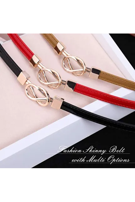 - ╭♥ Women Skinny Leather Belt -- Quality, luxurious, timeless leather accessories with designer metal decorative interlock, a【must-have】 fashion item for every ladies dresses!!