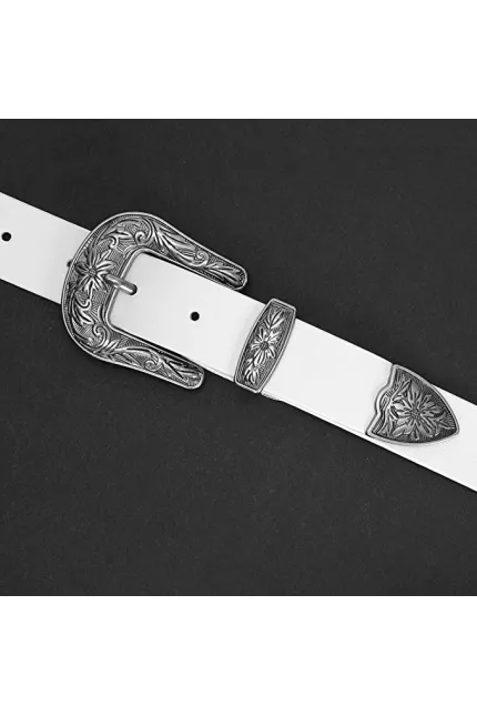 - ☃ EXQUISITE DESIGNER WESTERN BELT - Retro pattern on the silver buckle looks classic and elegant. The buckle workmanship is smooth, friendly and good touch feeling that won't hurt your skin. Its belt loop and tail is also fashionable, timeless and pretty.