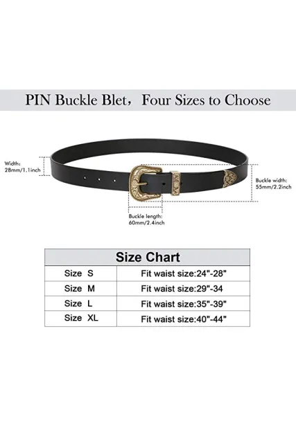 - ✿ ADJUSTABLE COWHIDE LEATHER BELT - This narrow women leather belt has Four sizes to fits waist range from 24" to 44"(US 0-18). The removable pin buckle make the leather strap to be trimmed possible. You cloud DIY the belt to the perfect size.Western Vintage narrow Belt: 28 mm/1.1" wide only, fit most pants belt for women.