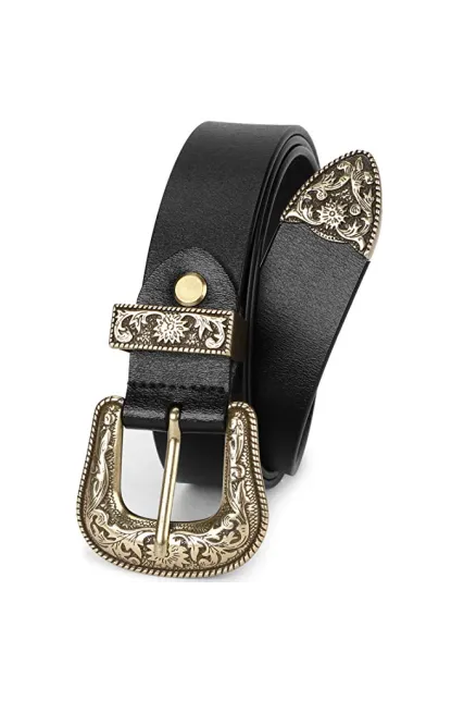 - ✿ EXQUISITE DESIGNER WESTERN BELT - Retro pattern on the silver buckle looks classic and elegant. The buckle workmanship is smooth, friendly and good touch feeling that won't hurt your skin. Its belt loop and tail is also fashionable, timeless and pretty.