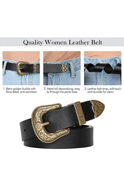 - ✿ POPULAR WOMEN LEATHER BELT - This classic vintage western belt is fashionable and timeless. The unique designer of leather belt is great for female; formal and casual; not only a waist belt to hold up your jeans, skirts, pants, but accessories for long blouse or dresses.