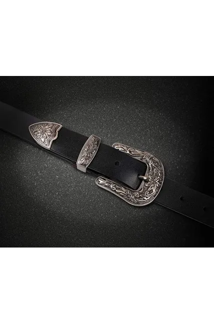 - ☃ EXQUISITE DESIGNER WESTERN BELT - Retro pattern on the silver buckle looks classic and elegant. The buckle workmanship is smooth, friendly and good touch feeling that won't hurt your skin. Its belt loop and tail is also fashionable, timeless and pretty.