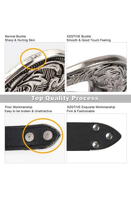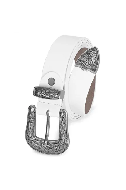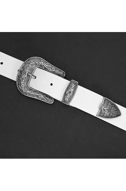 - ☃ EXQUISITE DESIGNER WESTERN BELT - Retro pattern on the silver buckle looks classic and elegant. The buckle workmanship is smooth, friendly and good touch feeling that won't hurt your skin. Its belt loop and tail is also fashionable, timeless and pretty.