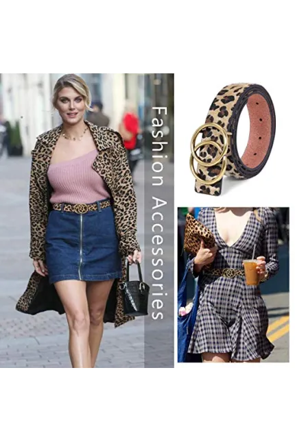 - ✦Double O-Ring Belt -- Double ring belt gold/silver buckle belt for women/girls, Fashion G^G style leather Belt, solid metal belt buckle removable,