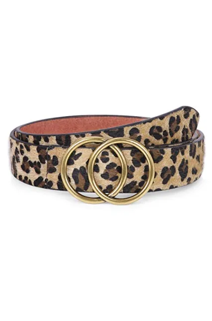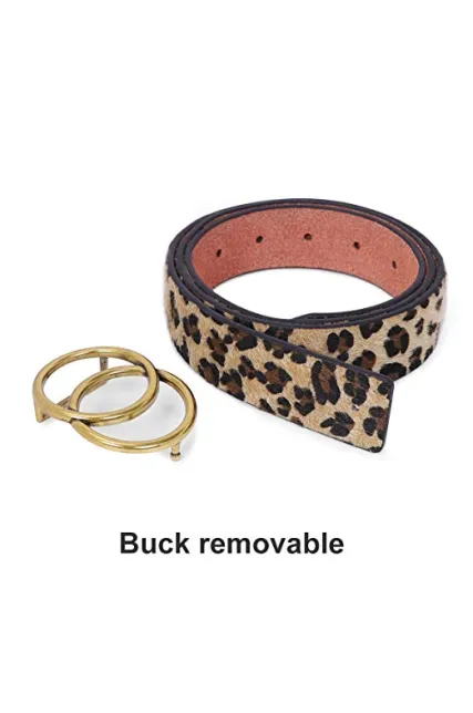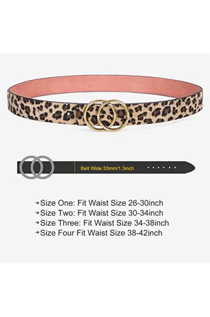 Women's Leather Ring Belt for Jean, Double Circle Buckle Belts Fit Waist 26-42 Inch