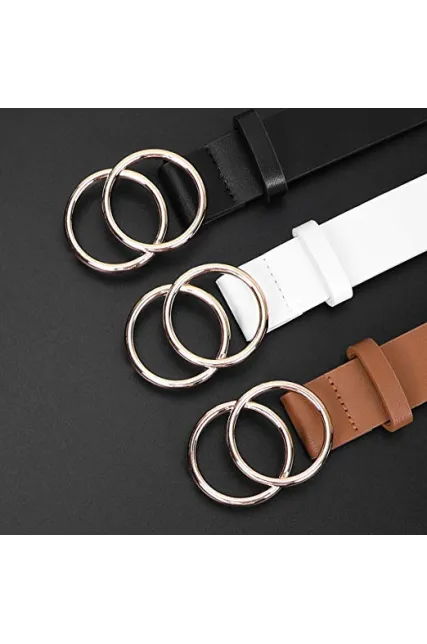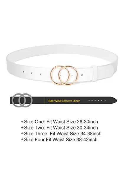 Women's Leather Ring Belt for Jean, Double Circle Buckle Belts Fit Waist 26-42 Inch
