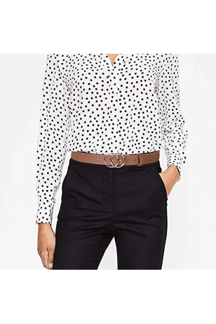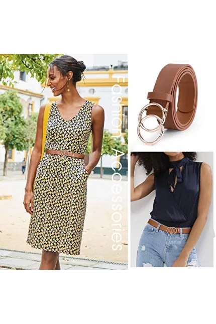 - ✦Double O-Ring Belt -- Double ring belt gold/silver buckle belt for women/girls, Fashion G^G style leather Belt, solid metal belt buckle fixed,