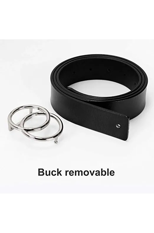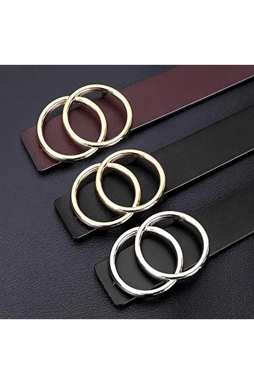 - ✦Double O-Ring Belt -- Double ring belt gold/silver buckle belt for women/girls, Fashion G^G style leather Belt, solid metal belt buckle removable,