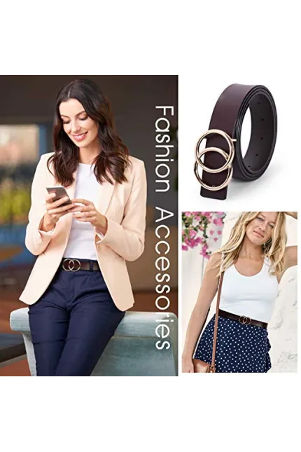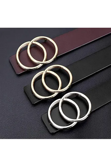 - ✦Double O-Ring Belt -- Double ring belt gold/silver buckle belt for women/girls, Fashion G^G style leather Belt, solid metal belt buckle removable,