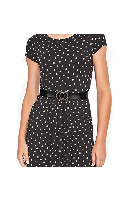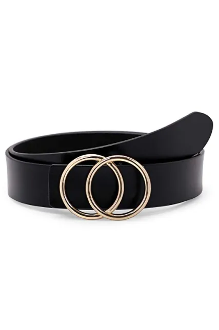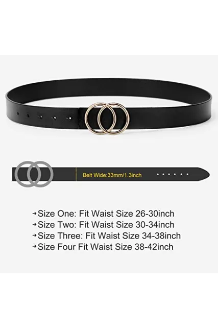 Women's Leather Ring Belt for Jean, Double Circle Buckle Belts Fit Waist 26-42 Inch