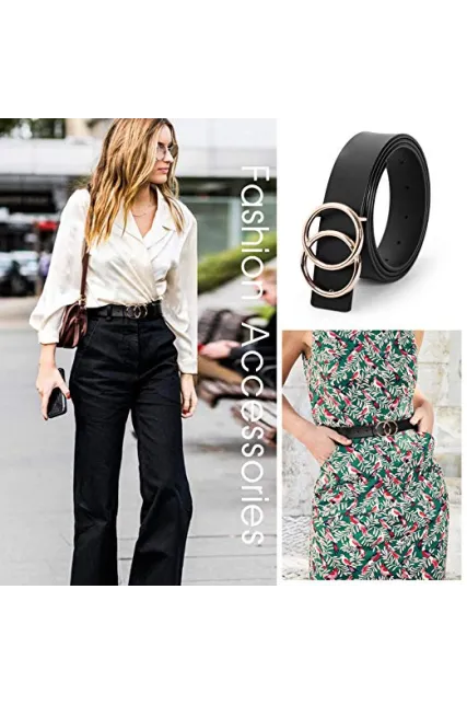 - ✦Double O-Ring Belt -- Double ring belt gold/silver buckle belt for women/girls, Fashion G^G style leather Belt, solid metal belt buckle removable,