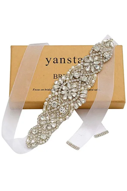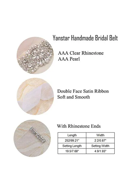 Yanstar Handmade Bridal Belt Wedding Belts Sashes Rhinestone Crystal Beads Belt For Bridal Gowns