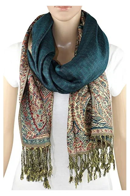 - This paisley jacquard pashmina can be draped to create different looks and styles. Its drape and sheer vibrancy of hues of natural colors have added to its reputation as a best quality fashion wrap available. It's an exquisite scarf for day and evening wear.