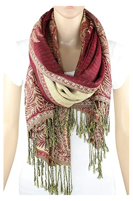 - This paisley jacquard pashmina can be draped to create different looks and styles. Its drape and sheer vibrancy of hues of natural colors have added to its reputation as a best quality fashion wrap available. It's an exquisite scarf for day and evening wear.