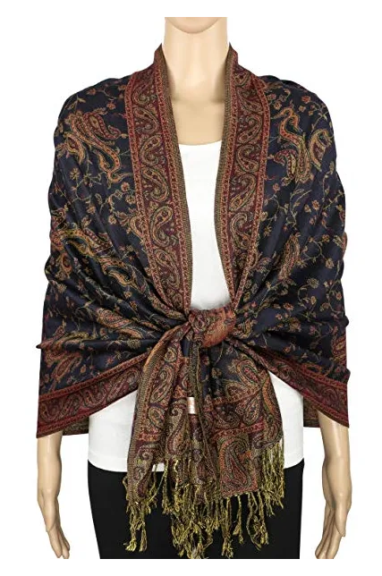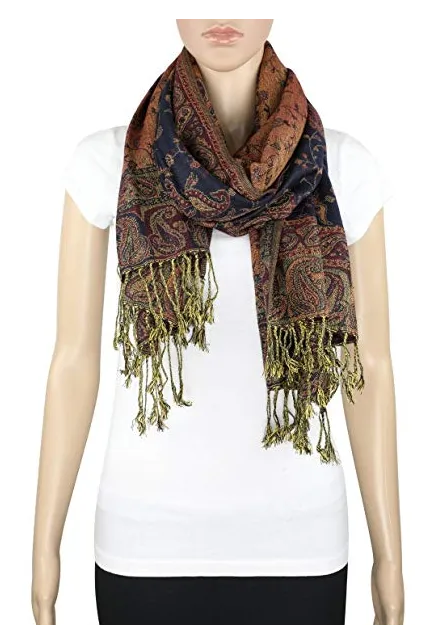 - This paisley jacquard pashmina can be draped to create different looks and styles. Its drape and sheer vibrancy of hues of natural colors have added to its reputation as a best quality fashion wrap available. It's an exquisite scarf for day and evening wear.