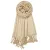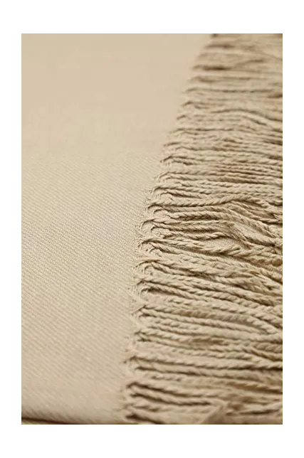 - Blend of fine viscose or acrylic. Weight: Approx. 7 oz. Length Approx. 78" including fringes (72" + 3" fringes each side) / width Approx. 27". It's soft, medium weight, and has a subtle sheen. Drapes nicely. Rolls up and fits in your purse easily.