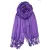 - Blend of fine viscose or acrylic. Weight: Approx. 7 oz. Length Approx. 78" including fringes (72" + 3" fringes each side) / width Approx. 27". It's soft, medium weight, and has a subtle sheen. Drapes nicely. Rolls up and fits in your purse easily.