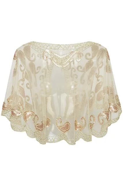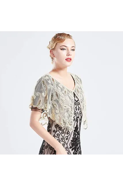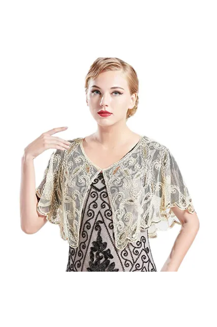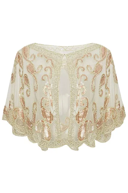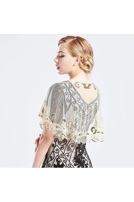 BABEYOND 1920s Shawl Wraps Sequin Beaded Evening Cape Bridal Shawl Bolero Flapper Cover Up