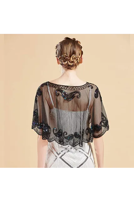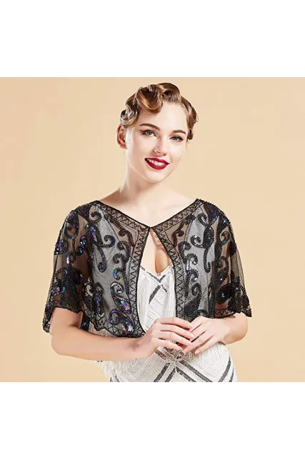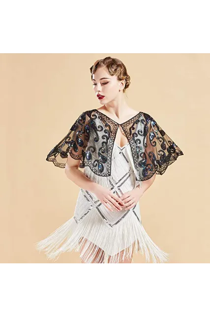 BABEYOND 1920s Shawl Wraps Sequin Beaded Evening Cape Bridal Shawl Bolero Flapper Cover Up